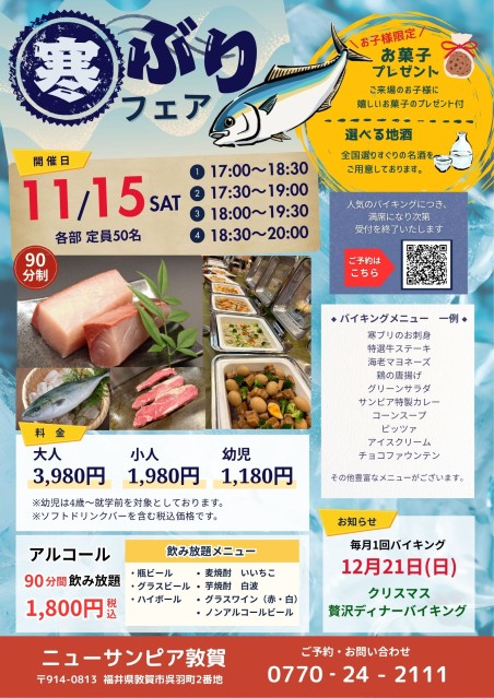 11月は寒ぶりフェアバイキングを開催いたします!🐟